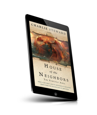 “A fiery, mythical bird soars against a stormy sky on an aged, parchment-like book cover.”