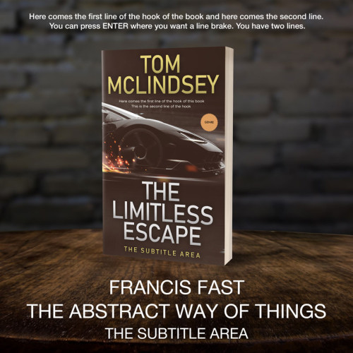 “A sleek car with sparks in motion, against a dark background. Title: "The Limitless Escape" by Tom McLindsey. Genre noted.”