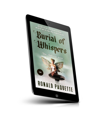 “A book cover titled "Burial of Whispers" featuring a seated fairy with butterfly wings on a soft green background.”