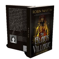 “A dark, mystical figure with glowing elements stands in a dramatic pose, surrounded by an eerie atmosphere. The title reads "The Black Village."”