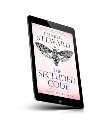 “A detailed black-and-white moth design on a white background with a pink gradient at the bottom.”