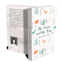 “The image features an illustrated book cover with various animals, trees, and snowflakes in a whimsical, winter-themed design.”