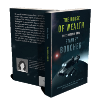 “A spaceship flies near a planet in a dark, starry space setting. The cover has a futuristic and mysterious vibe.”