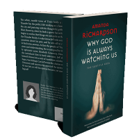 “A pair of hands in prayer on a dark background, with centered text above.”