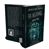 “A spooky, dark book cover featuring an ominous skull beneath an arched window, set against a cloudy, eerie sky.”