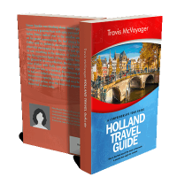 “A vibrant scene of a picturesque canal in Holland, with charming buildings and a bridge under a clear blue sky.”