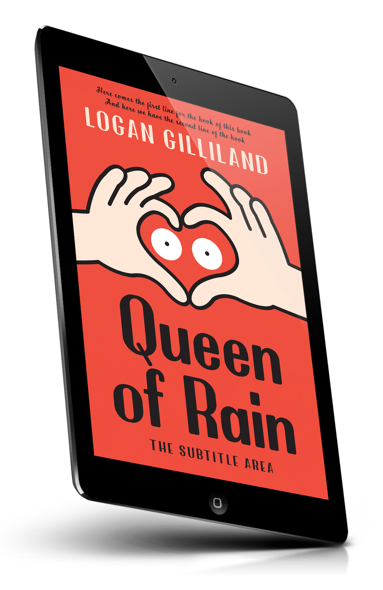 Tags: heart, hands, hand gesture, love, romance, red background, cartoon, illustration, cute, playful, wide eyes, heart shape, bold typography, minimalist, flat design, graphic art, modern cover, quirky, pop art, bright red