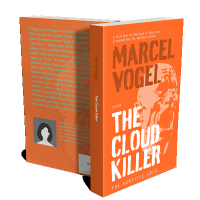 “An orange book cover with a menacing face on the right. The bold text emphasizes the title and the author's name prominently.”