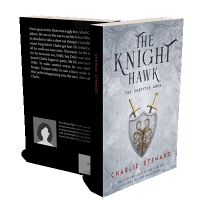 “Book cover with two crossed swords behind a shield with ornate design on a textured grey background.”