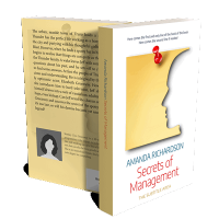 “A book cover with a profile silhouette on a yellow paper, a red pushpin, and a golden genre badge.”