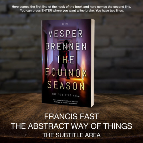This book cover has 3 lines for the title, 1 line for the subtitle, 2 lines for the author, 2 lines for the hook, and finally 1 line for the genre.