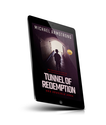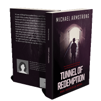 “A silhouette of a child stands in a dimly lit tunnel, with light shining from the end. A textured, dark and mysterious atmosphere.”