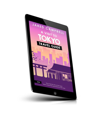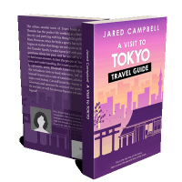 “Illustrated cover of a travel guide featuring Tokyo landmarks with a pink and orange gradient background.”