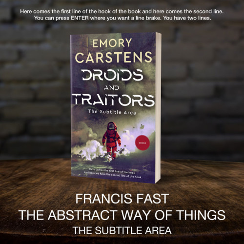 This book cover has 3 lines for the title, 1 line for the subtitle, 2 lines for the author, 2 lines for the hook, and finally 1 line for the genre.