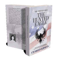 “An illustration of an eagle with spread wings against a backdrop resembling the American flag.”