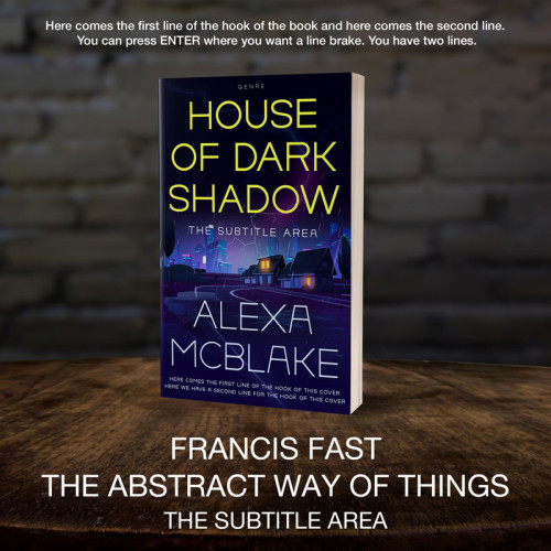 This book cover has 3 lines for the title, 1 line for the subtitle, 2 lines for the author, 2 lines for the hook, and finally 1 line for the genre.