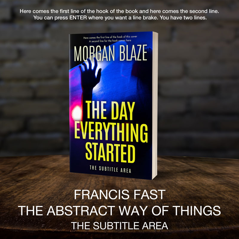 This book cover has 3 lines for the title, 1 line for the subtitle, 1 line for the author, 2 lines for the hook.