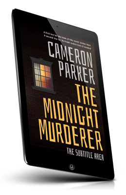 “Cover with a brick wall, lit window, and bold title "The Midnight Murderer" in large yellow letters.”