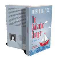 “A stylized book cover featuring a paper boat on gears against a blue sky with clouds.”