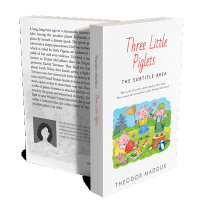 “Three piglets in a colorful outdoor scene with toys and a picnic, under a tree against a bright, cheerful background.”