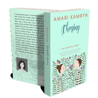 “A whimsical book cover with illustrated boy and girl surrounded by flowers and birds. The background is light green.”