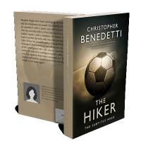 “A book cover featuring a soccer ball with a dark background, titled "The Hiker" by Christopher Benedetti.”