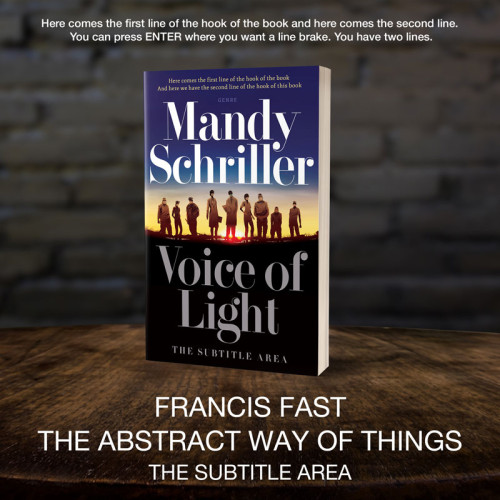 This book cover has 2 lines for the title, 1 line for the subtitle, 2 lines for the author, 2 lines for the hook, and finally 1 line for the genre.