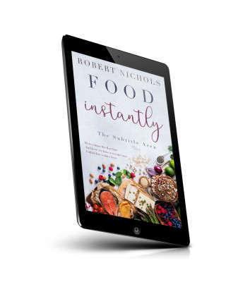 “A variety of fresh foods including salmon, cheese, vegetables, fruits, and grains are arranged on a light surface.”