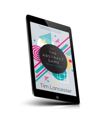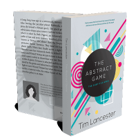 “Colorful geometric design with circles, lines, and shapes; a black circle in the center with the book title.”