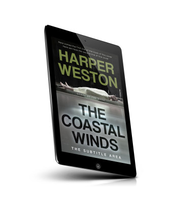 “A body covered with a white sheet lies in a morgue with the title "The Coastal Winds" and author "Harper Weston" displayed above and below.”