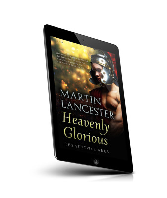 “A muscular man wearing a Roman-style helmet is depicted on the cover of a book titled "Heavenly Glorious."”