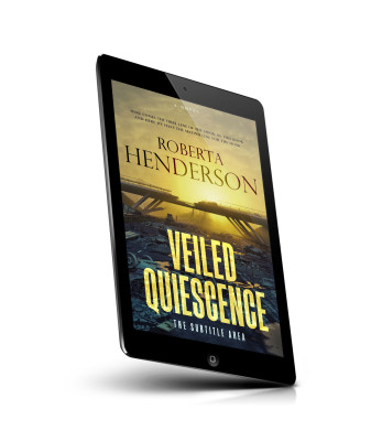 “A bridge over a river, surrounded by a misty sunrise, with text details for a novel cover.”