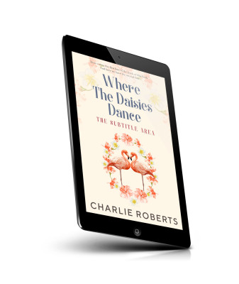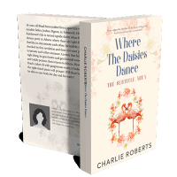“A book cover featuring two flamingos surrounded by flowers, with a soft pastel color palette.”