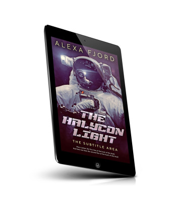 “An astronaut in space with a glowing light on their suit, set against a dark, starry backdrop. The title and author's name are in bold text.”