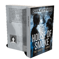 “Two silhouetted figures face each other amid swirling smoke on a dark background.”