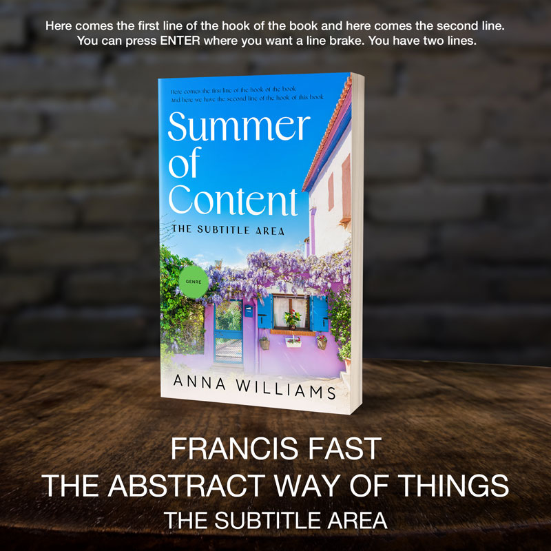This book cover has 3 lines for the title, 1 line for the subtitle, 1 line for the author, 2 lines for the hook, and finally 1 line for the genre.