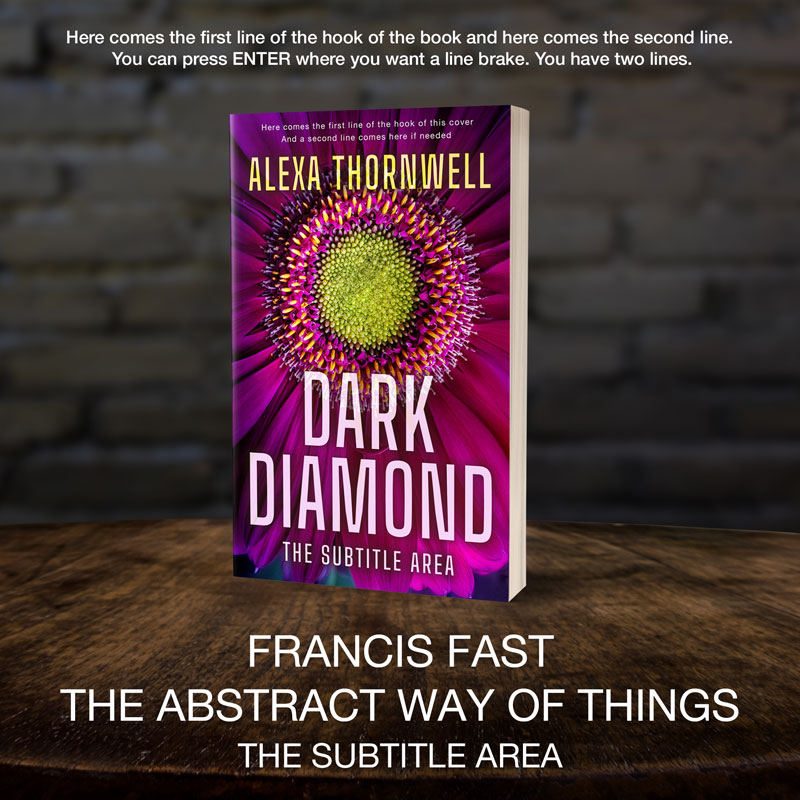 This book cover has 2 lines for the title, 1 line for the subtitle, 1 line for the author, 2 lines for the hook.