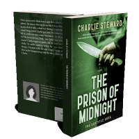 “A hand holding a large knife against a green textured background. Title and author's name are displayed prominently.”