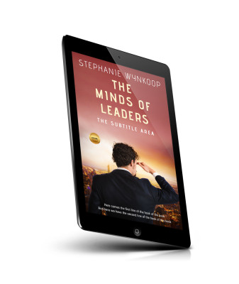 “A man in a suit looking at a city skyline at sunset, with the title "The Minds of Leaders" above him.”
