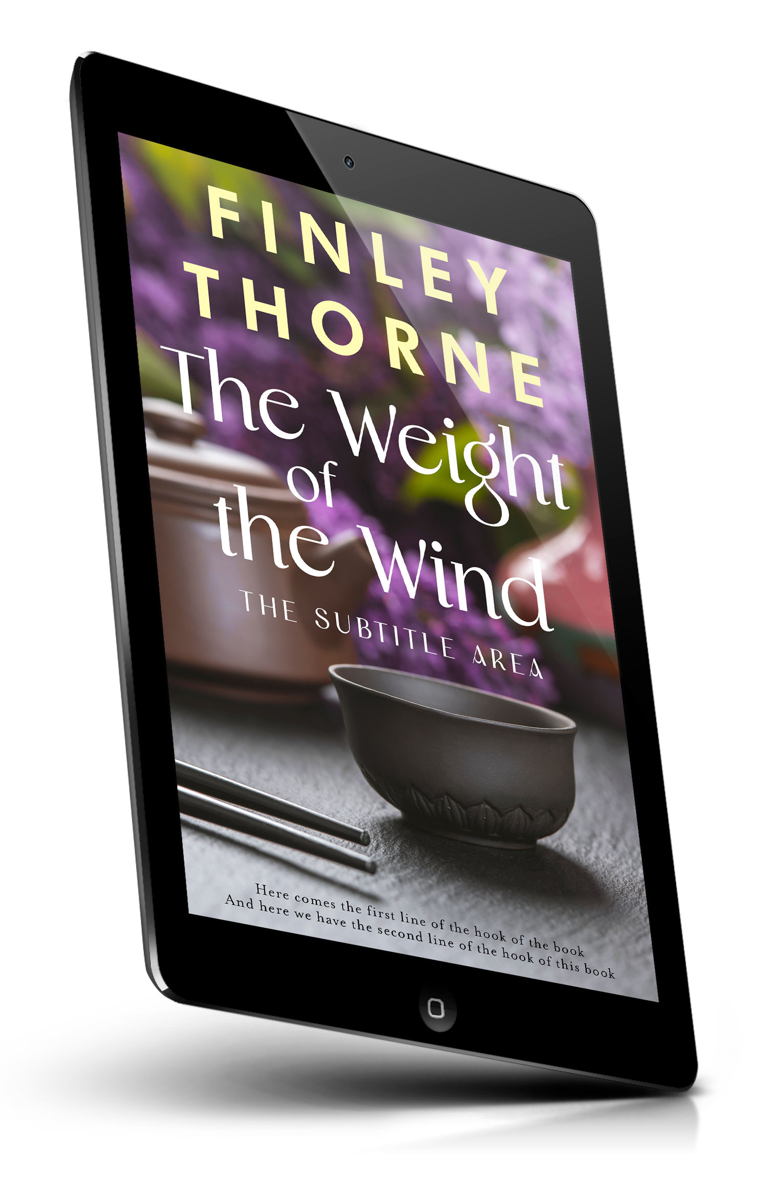 This book cover has 3 lines for the title, 2 lines for the author, 2 lines for the hook.