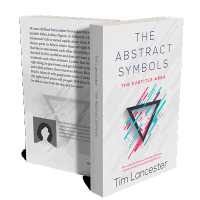 “Book cover with geometric shapes, a triangle centerpiece, colorful abstract lines, and a "Genre" badge on a light gray background.”