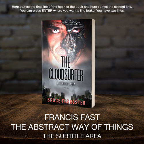 This book cover has 2 lines for the title, 1 line for the subtitle, 1 line for the author, 2 lines for the hook, and finally 1 line for the genre.