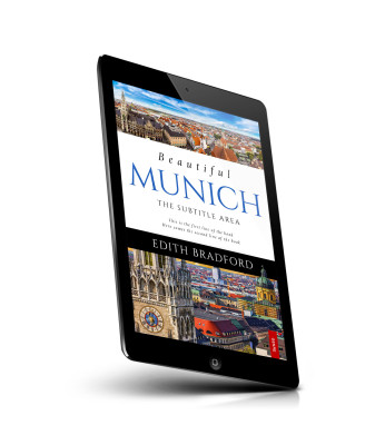 “A book cover of "Beautiful Munich" featuring cityscape views of Munich, with notable architecture and vibrant rooftops.”
