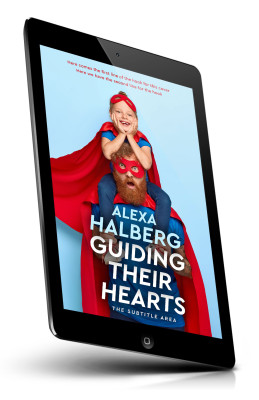 “Child wearing a red superhero mask and cape, sitting on an adult's shoulders, who is also in a mask and cape, on a blue background.”