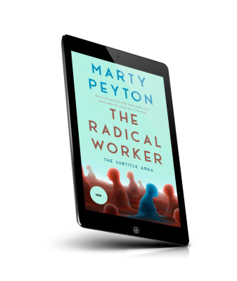 “A book cover with the title "The Radical Worker" featuring abstract human figures in red and blue against a green background.”