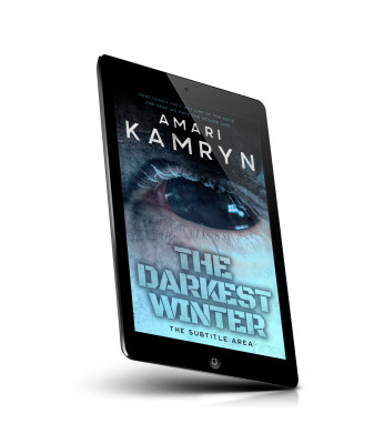“A close-up of a partially open eye with a blue tint and icy textures, set against a dark, moody background.”