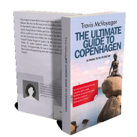 “A guidebook titled "The Ultimate Guide to Copenhagen" features a photo of the Little Mermaid statue by the water.”