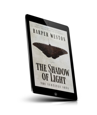 “A large moth is centered on a textured, aged background with bold text above and below.”