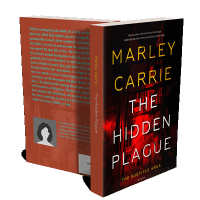 “A narrow alley illuminated by red lights, framed by the text "The Hidden Plague" in bold letters.”