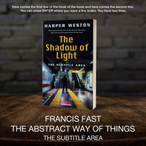 This book cover has 3 lines for the title, 1 line for the subtitle, 1 line for the author, 2 lines for the hook, and finally 1 line for the genre.